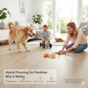 If you’re looking for flooring that can stand up to scratches, spills, and constant activity, hybrid flooring is one of the most practical solutions for family homes. It’s durable, easy to maintain, comfortable, pet-friendly, and affordable.
